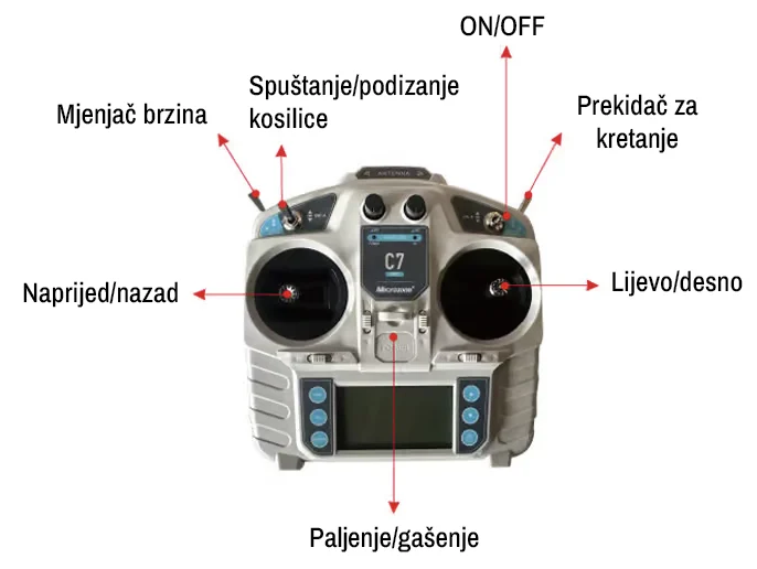 Daljinski upravljač omogućuje jednostavno i sigurno upravljanje kosilicom na svim terenima. Bez napora mijenjajte smjer, brzinu i postavke rada – sve iz udobnosti i sigurne udaljenosti. Idealno za zahtjevne uvjete i teže dostupna područja.