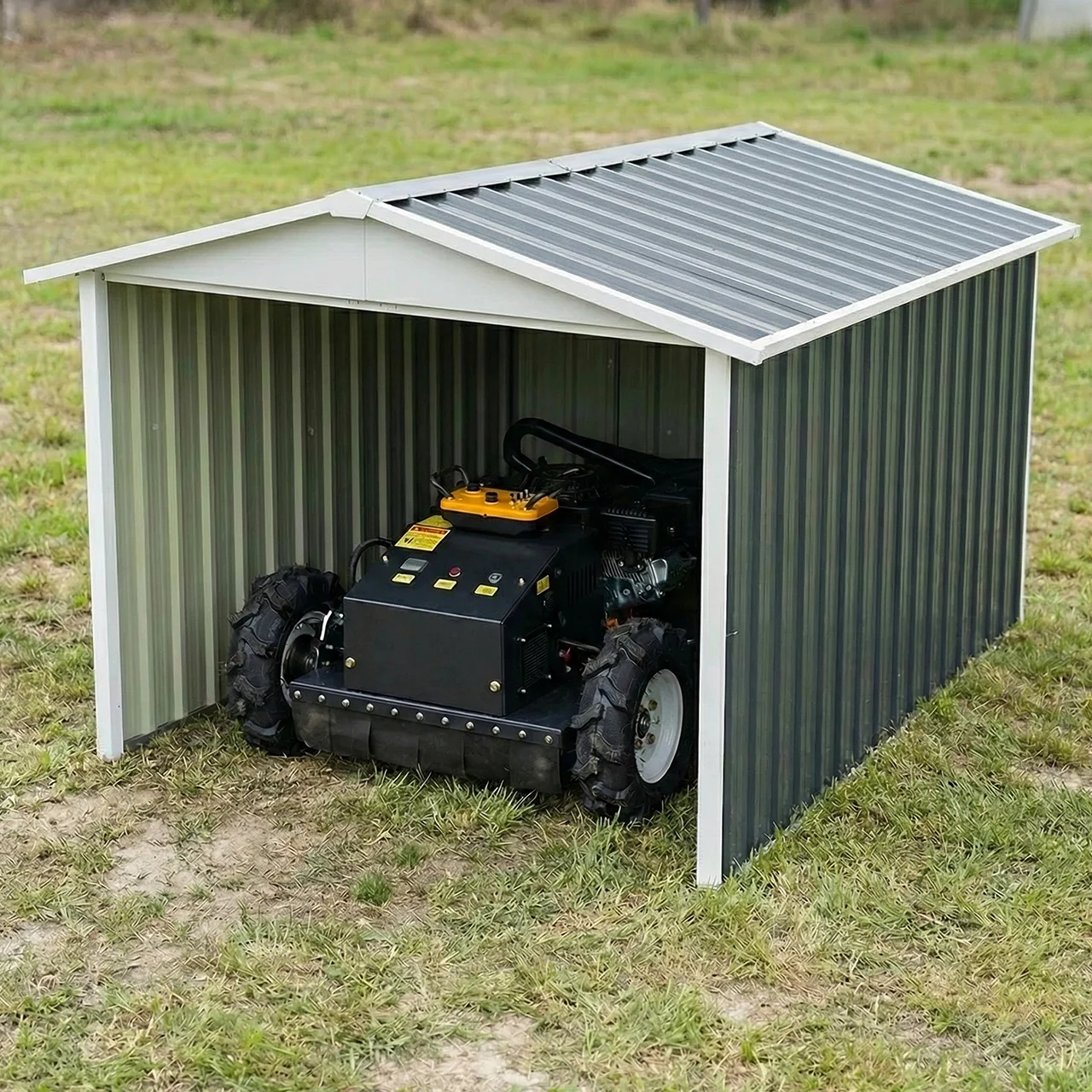Mobilne garaže od lima idealno su rješenje za zaštitu kosilica i malčera od kiše, snijega, sunca i nečistoća. Dizajnirane su posebno za vanjsku upotrebu te osiguravaju dugotrajnu zaštitu i uredno skladištenje strojeva tijekom cijele godine.